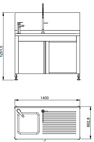 Length 1400 mm / Width 602 mm / Height 1251.5 mm |