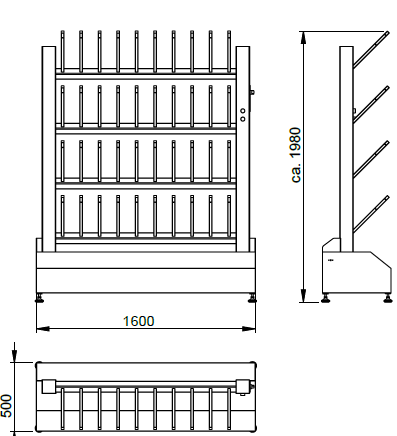 Length 500 mm / Width 1600 mm / Height 1980 mm |